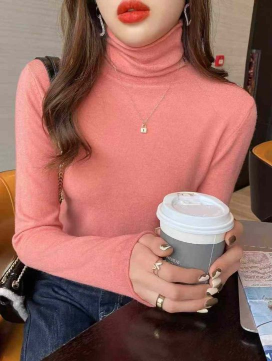 秋冬新款净版简约宽松高领打底外穿包芯纱套头毛衣,独...