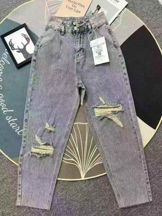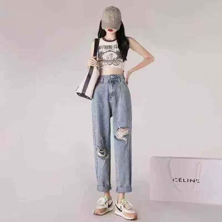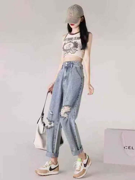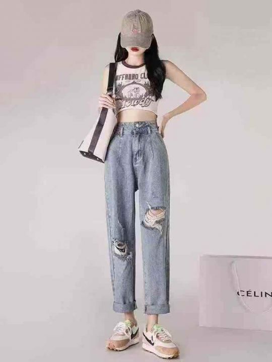 中山高品质牛仔☕️180条全清11.8元,码数 XS S M ,正品独立包装,破洞牛仔裤女直筒哈伦裤春夏款高腰显瘦宽松老爹裤。 货号:1303