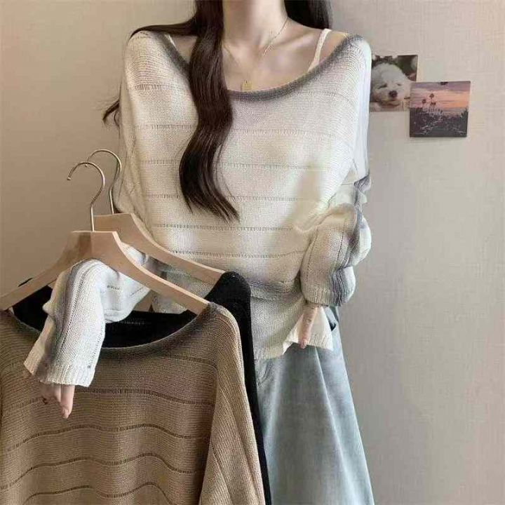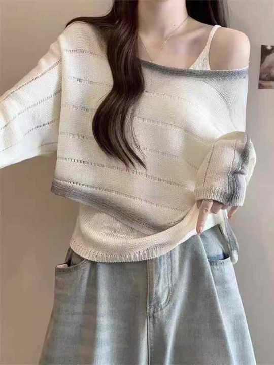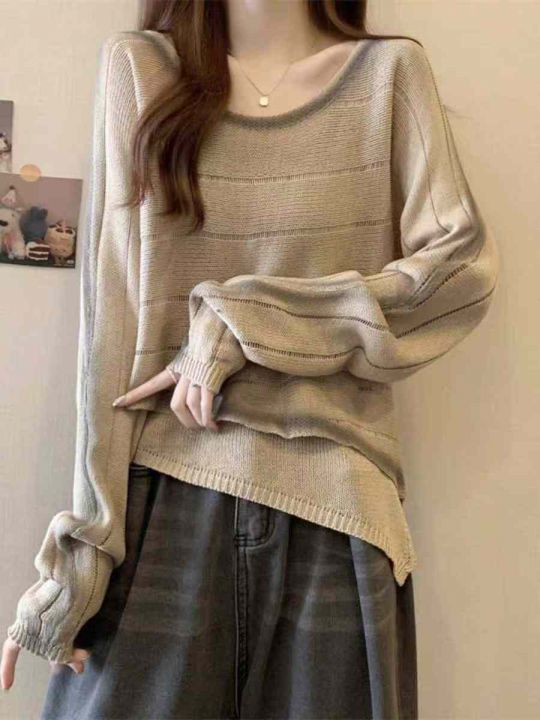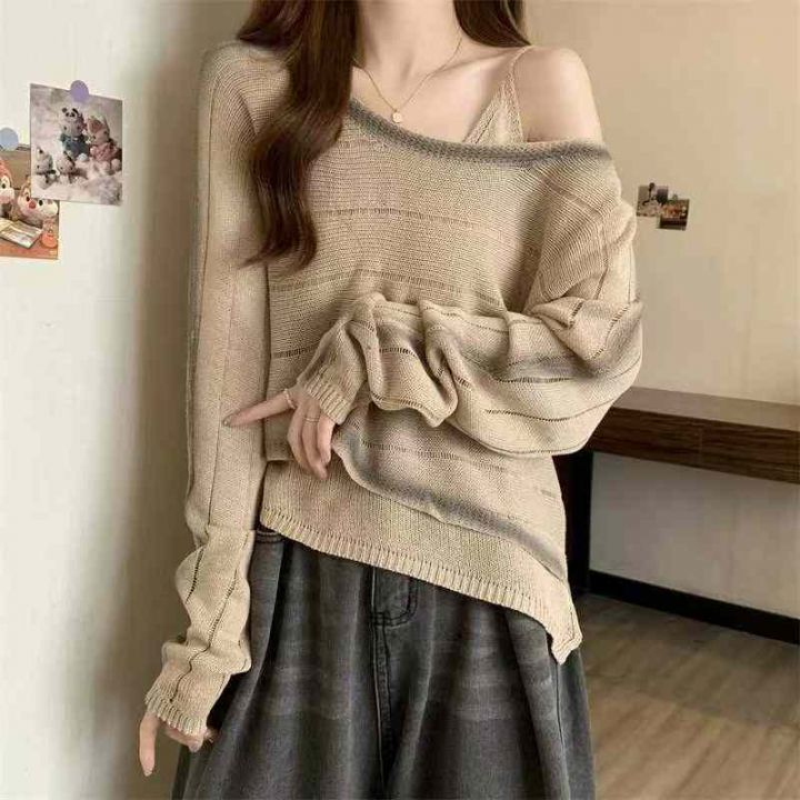 秋季新品美拉德色系宽松胖mm设计感长袖针织衫+冰丝吊...