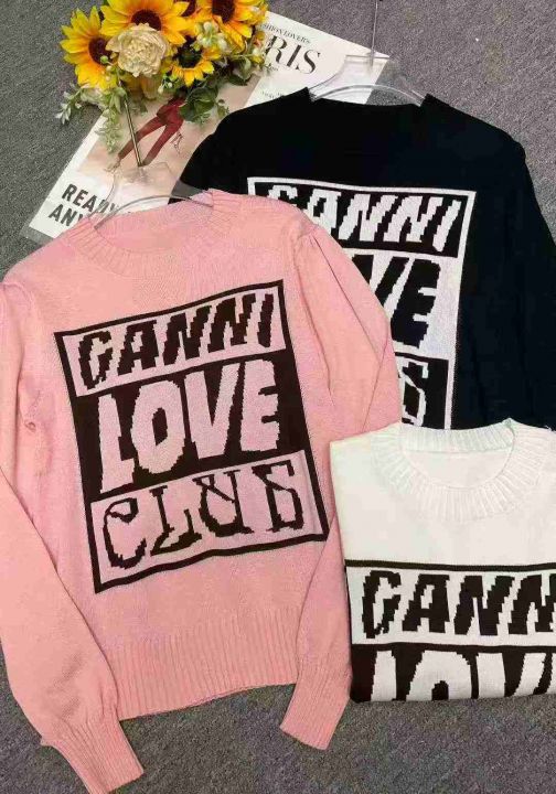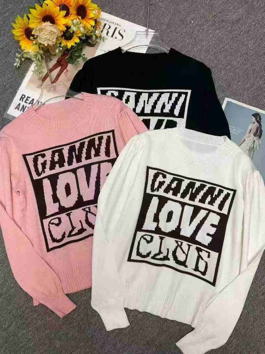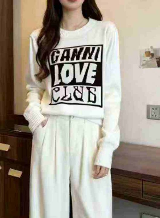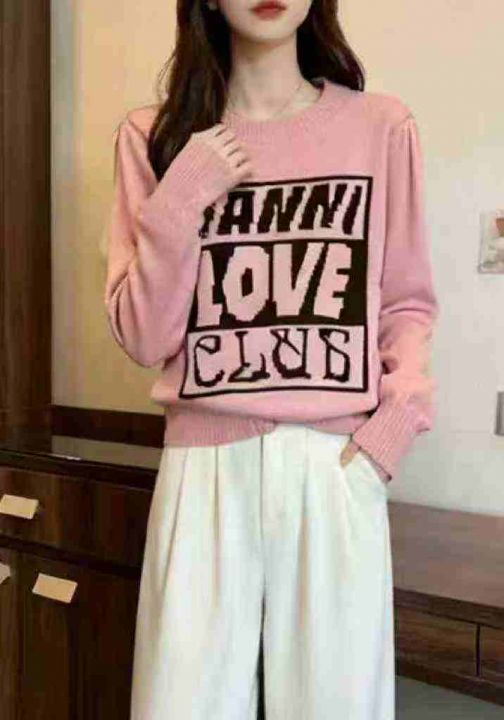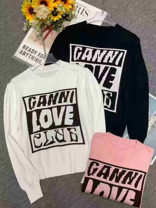 秋季新品字母提花圆领泡泡袖套头毛衣,独立包装,均码...