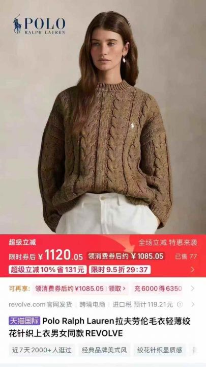 拉夫Polo麻花宽松毛衣