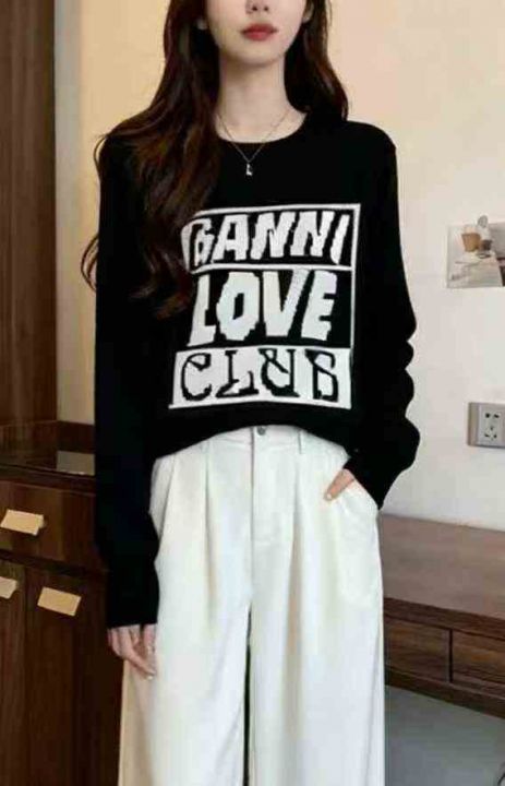 秋季新品字母提花圆领泡泡袖套头毛衣,独立包装,均码面料柔软舒适弹力大,...