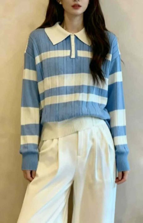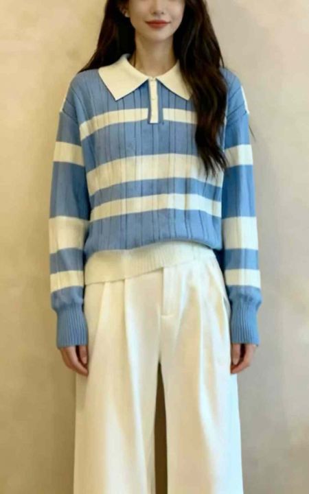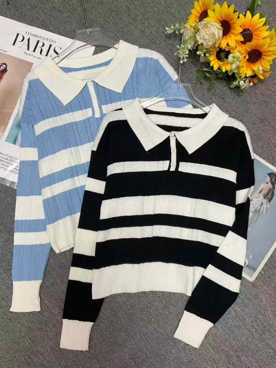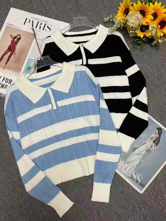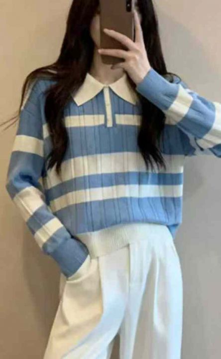 秋冬新款撞色条纹宽松Polo领套头毛衣,独立包装,均码面料柔软舒适弹力大,蓝色为主,171件,全清5.9元超低价秒杀!