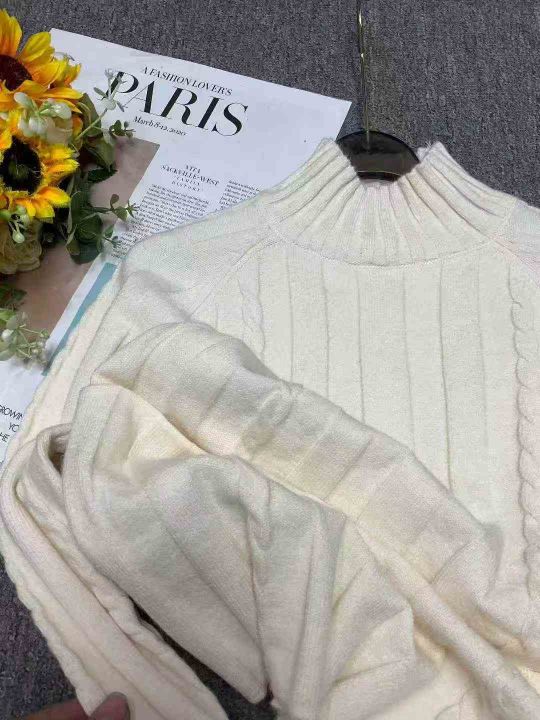 捡漏款,秋冬新款宽松百搭坑条麻花半高领包芯纱套头毛...