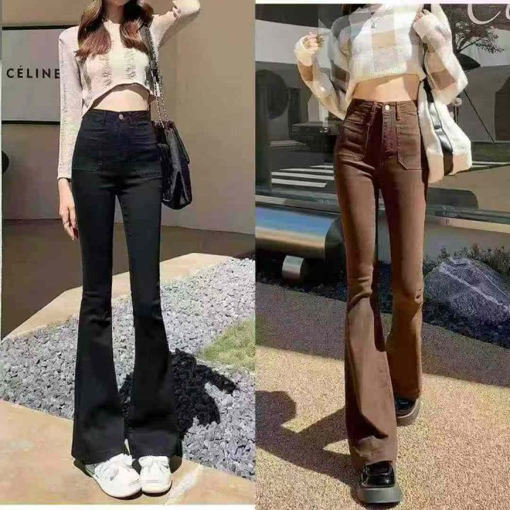 高腰加绒加厚微喇叭女土弹力牛仔裤,整款2个颜色,独...
