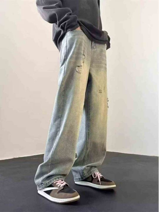 春秋新款男女同款复古蓝破洞设计款牛仔裤,独立包装带吊牌,码数S-XL码, ...
