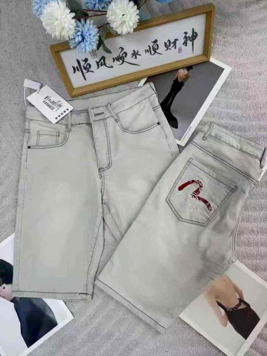 男士新款潮牌弹力牛仔中裤网红潮流刺绣款休闲修身,