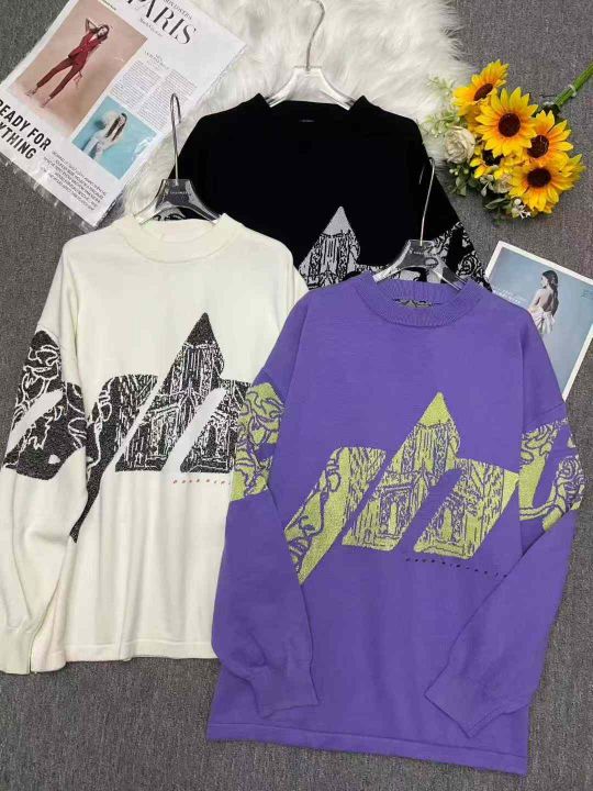 秋冬新款男士潮牌宽松慵懒风提花包芯纱圆领套头毛衣,独立包装,码数M-2XL...