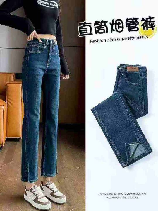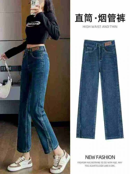 ☕️高弹力直筒牛仔裤女新款春秋宽松弹力显瘦高腰法棍...