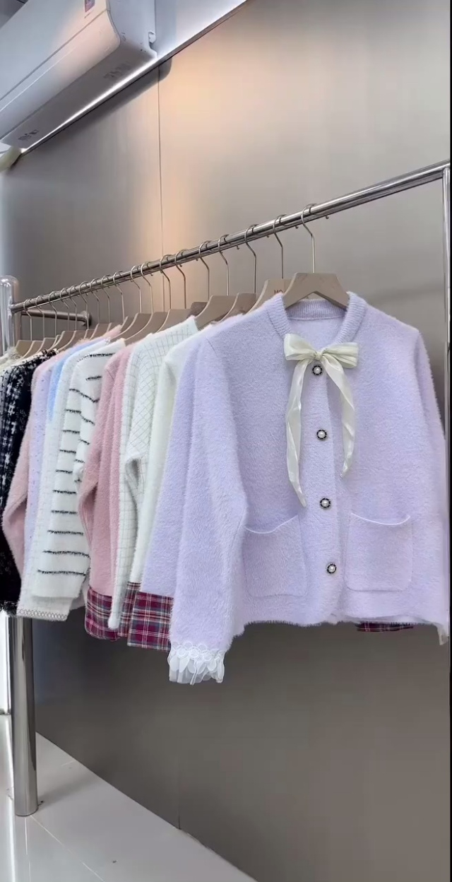 秋季新品法式宽松短款慵懒v领长袖针织衫,独立包装,均码面料柔软舒适,190...