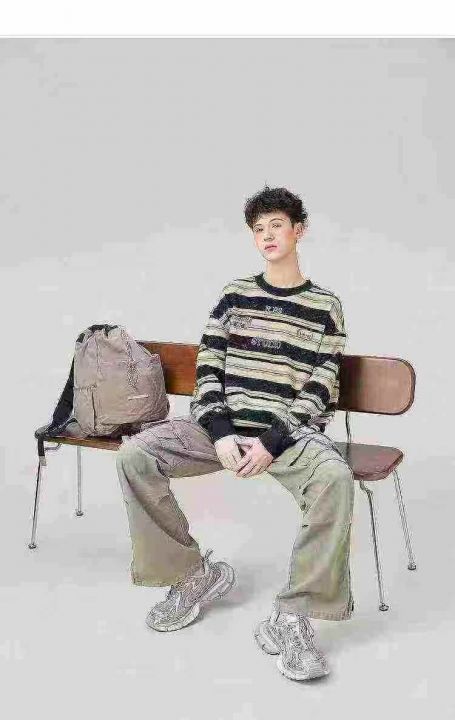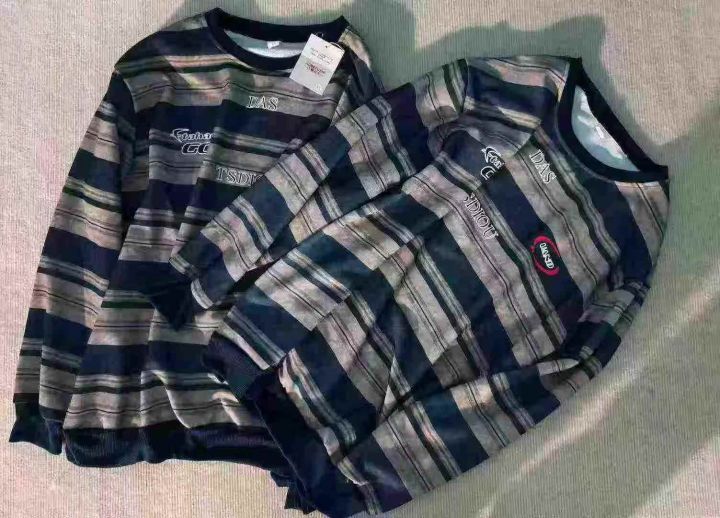 大码潮牌没计感大版型宽松痞帅鱼鳞布印花条纹卫衣,28...