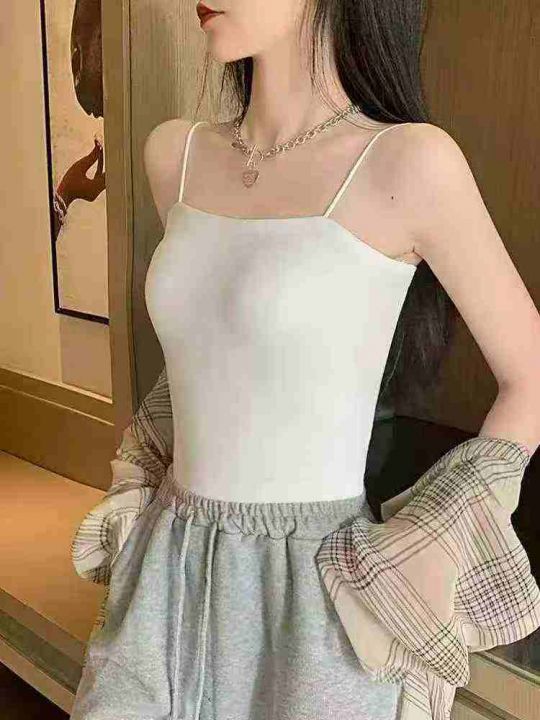 品牌原单夏秋季新品净版百搭95拉架棉吊带背心,白色为...