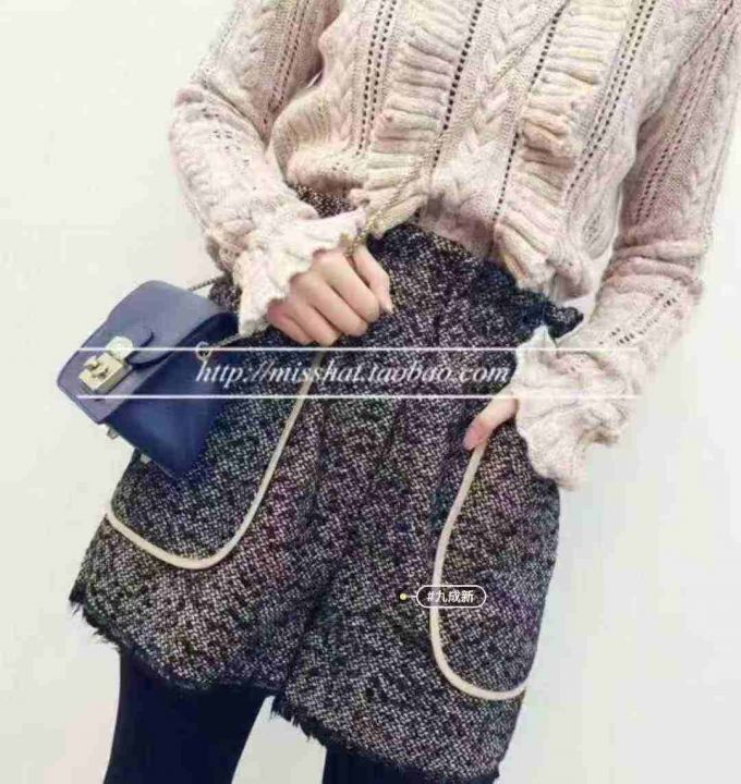 秋冬新款小香风高腰显瘦呢子A字阔腿短裤,独立包装,码数S--L码,260件左右,全清2.99元亏本处理!
