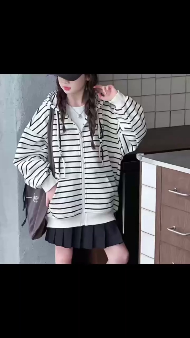 女装卫衣春秋季简约条纹圆领长袖款式套头拼色卫衣,码数S M L XL,独立包装...