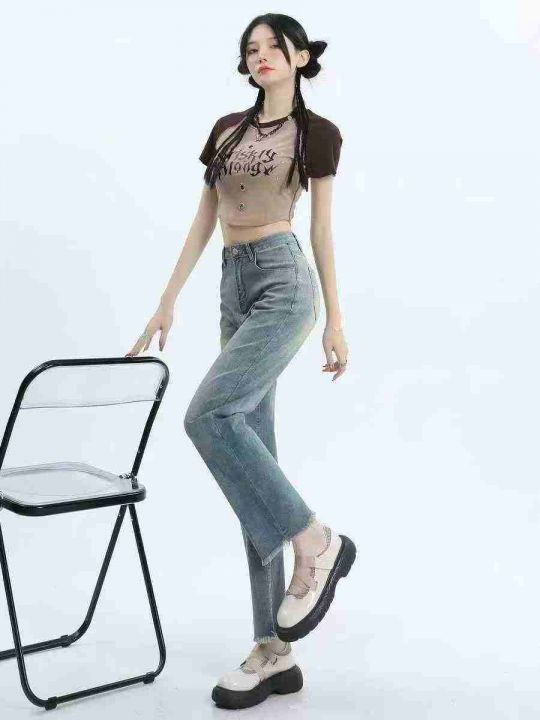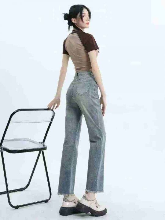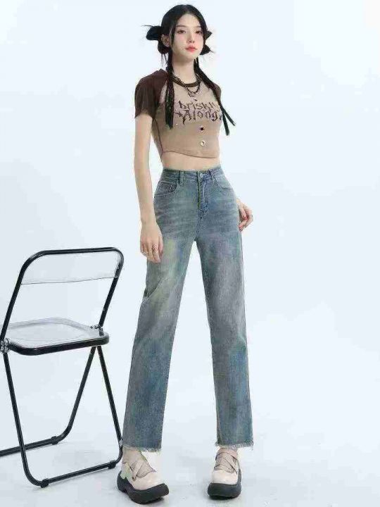 ☕️高弹力直筒牛仔裤新款今年流行爆款高腰显瘦复古毛...