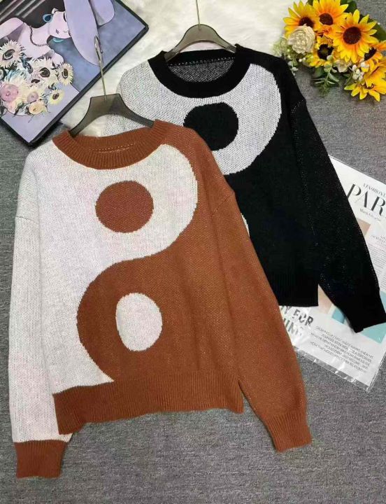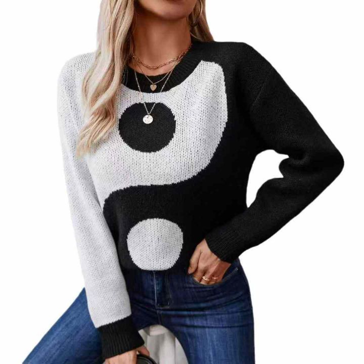 秋冬新款外贸跨境女式毛衣欧美宽松复古套头撞色毛衣,...