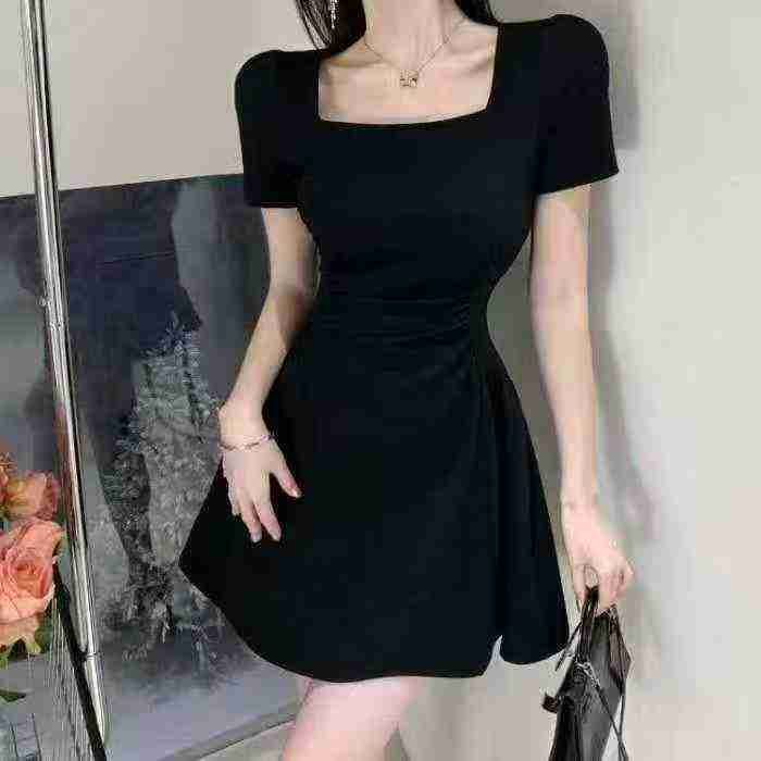高级感赫本风方领收腰褶皱连衣裙,[爱心]1030件左右,S-M为主,码数S-XL,穿80-130斤,[666]工厂原包装瑕疵,分货加一