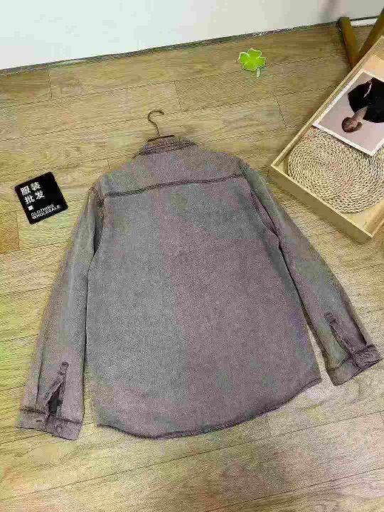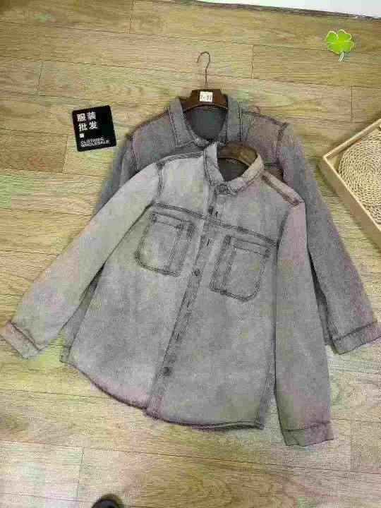 品牌男装 宽松型 复古休闲双口袋牛仔衬衫外套,数量16...