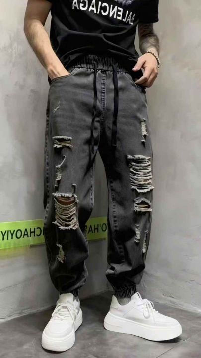 秋季新品洗水棉网红破洞个性松紧腰牛仔裤,独立包装,...