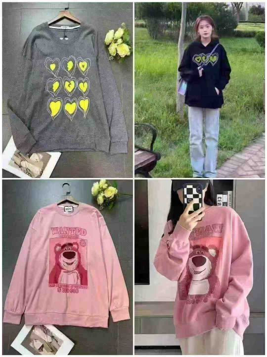 上身圆领卫衣[太阳]全清13.、300件、均码男女纯棉宽松休闲时尚字母图案印花长袖卫衣,大部分后领包边到肩,部分有吊牌,品质,这个性价比直接拉满✅全部全新独立包装、100/200件起多款混配13.3