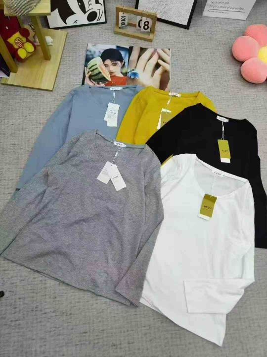 1200件左右女装长袖修身款,拉架棉,有圆领有V领,整款,一款多色,独立包装统一吊牌货品干净,质量很好,码数S -3xl 清货5.99 分货加1