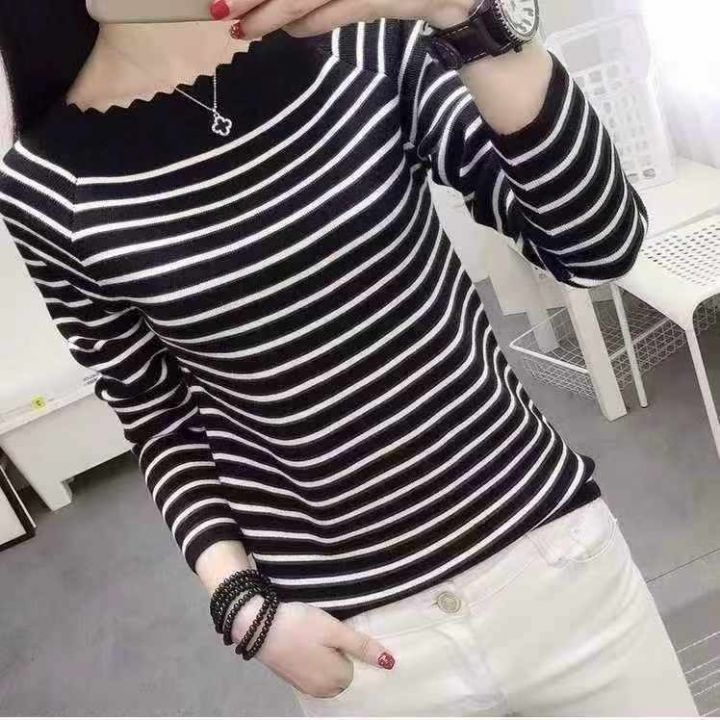 133件包芯纱女装秋冬新款针织打底衫,单款两色,套头条纹百搭上衣,面料柔软,质量好 独立包装模特仅供参考实拍为主