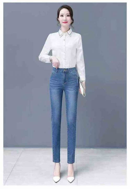 春秋新款高弹力轻熟女装牛仔长裤,独立包装带吊牌,码...