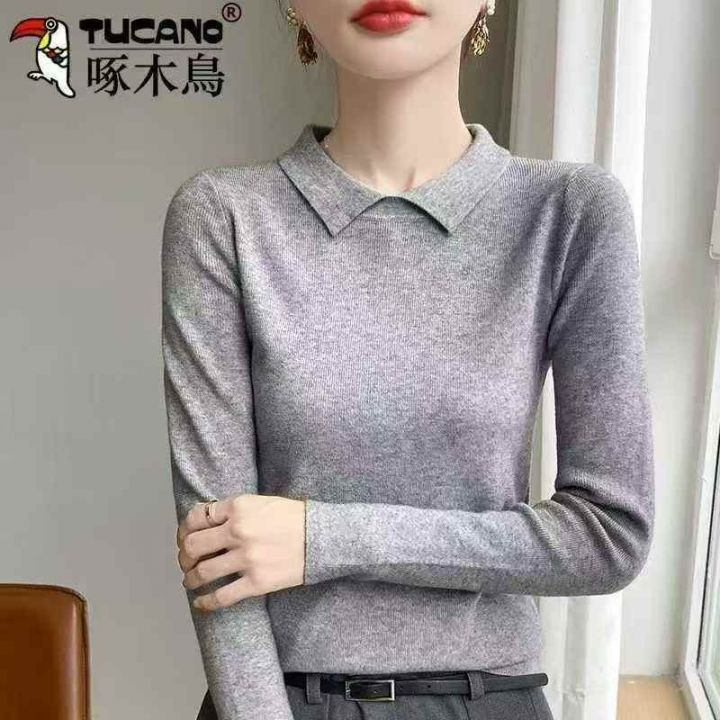 7.9清248件女装翻领纯色百搭秋冬新款打底毛衣针织衫,...