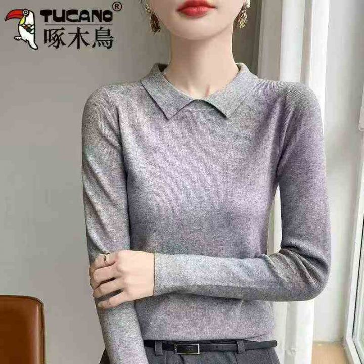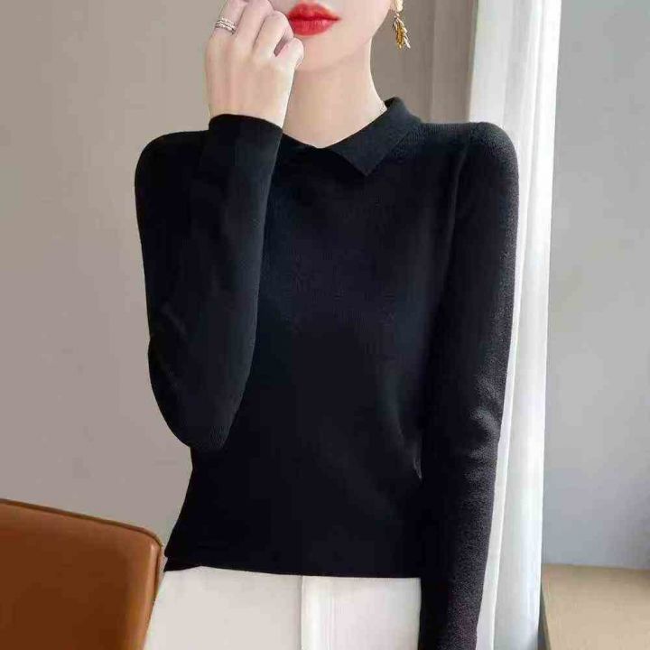 7.9清248件女装翻领纯色百搭秋冬新款打底毛衣针织衫,...