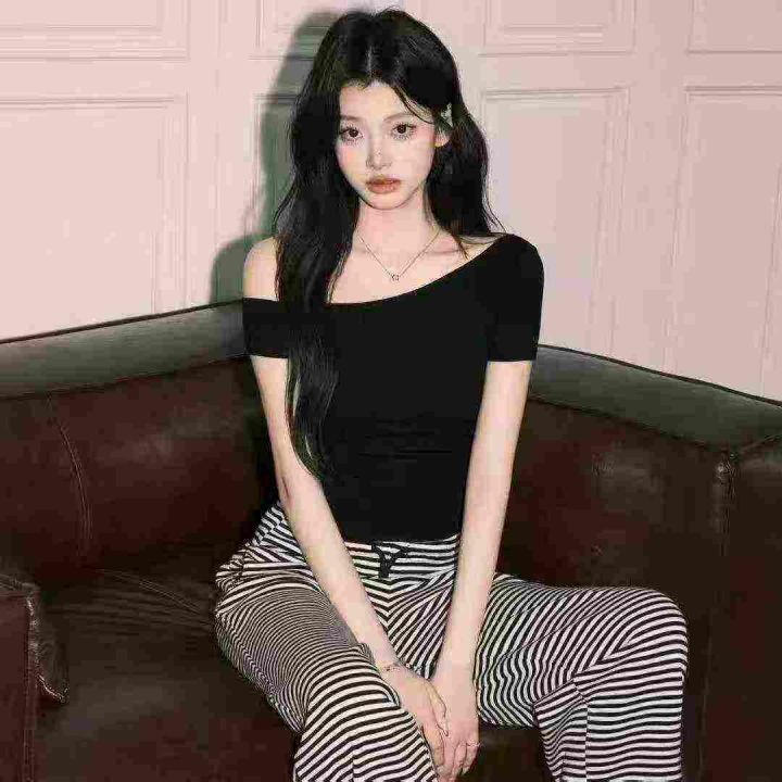 2.5清电商仓回收1166件纯欲性感斜肩短袖上衣,码数S-2...