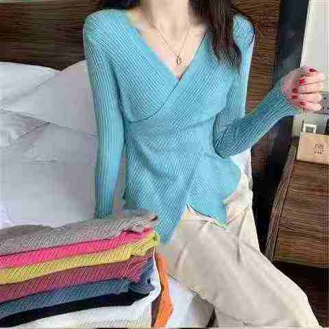 秋冬新款网红设计感宽松百搭小众交叉V领坑条包芯纱套头毛衣,独立包装,均码面料软糯舒适弹力大,290件,全清6.9元超低价秒杀!