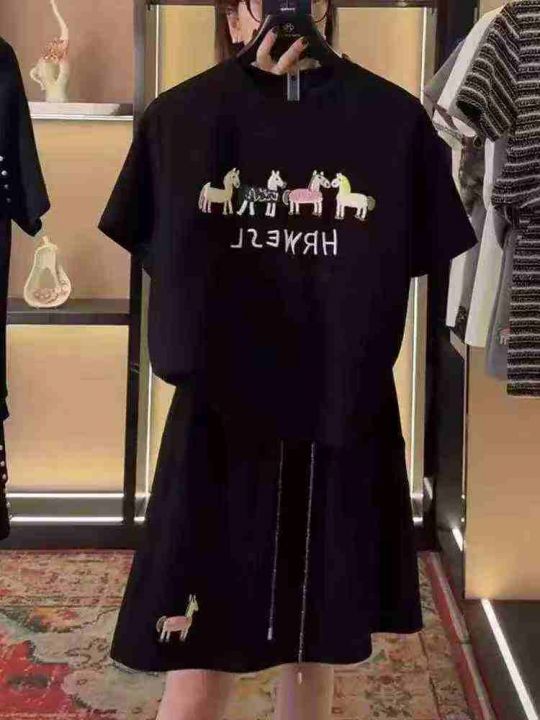 时尚设计感刺绣小马短袖T恤显瘦半身裙裤夏季洋气减龄两件套,独立包装,码数1/3/4/5码,数量179套,货号1122#46
