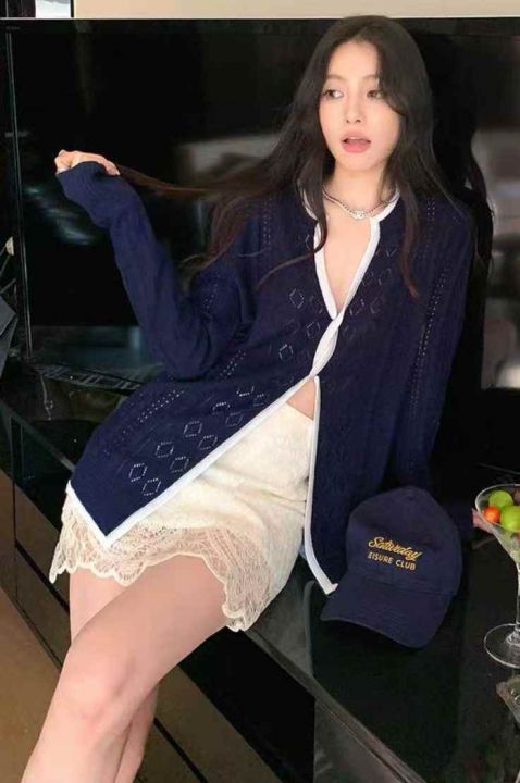 捡漏款,秋季新品纯欲辣妹撞色v领收腰显瘦百搭气质长袖针织开衫,独立包装...