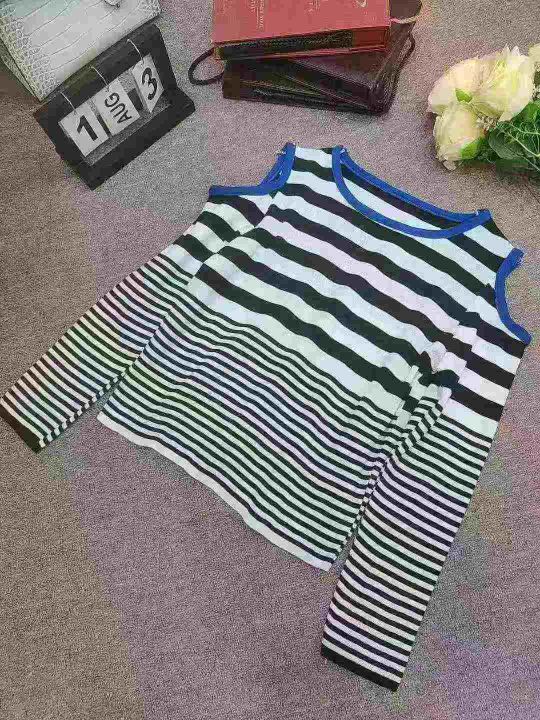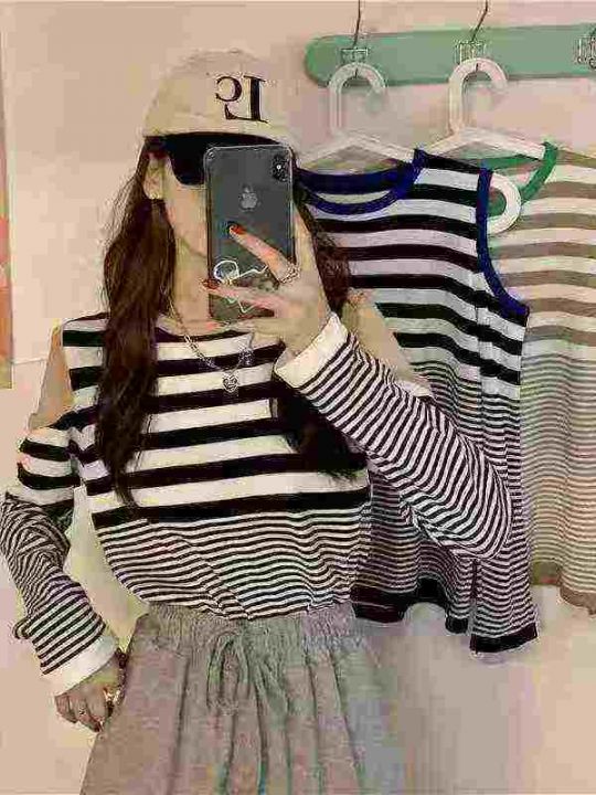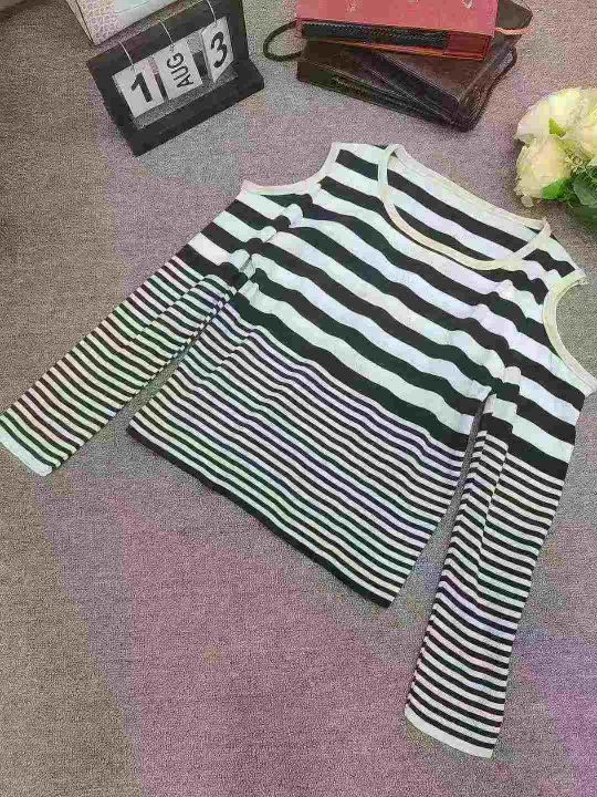 三色入!配色绝绝子~春秋百搭宽松黑白条露肩圆领毛针...