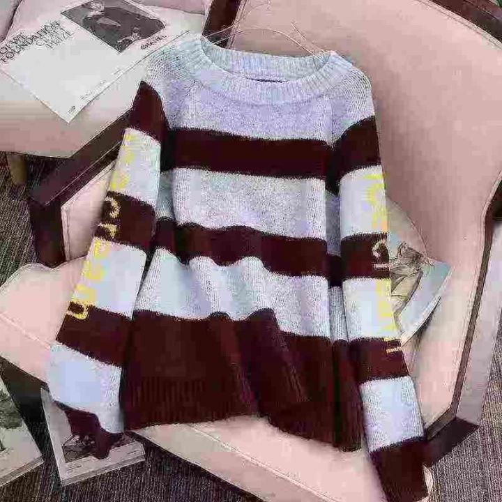 女装秋冬款复古撞色条纹ins港风大版厚重宽松毛衣针织衫上衣,独立包装,均码,633件,清8.8,分➕1