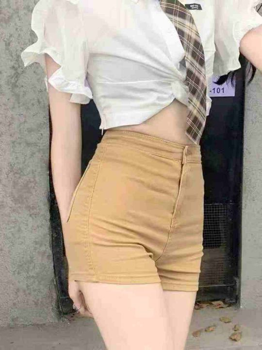 夏季新款高腰辣妹性感弹力显瘦洗水棉牛仔短裤,独立包...