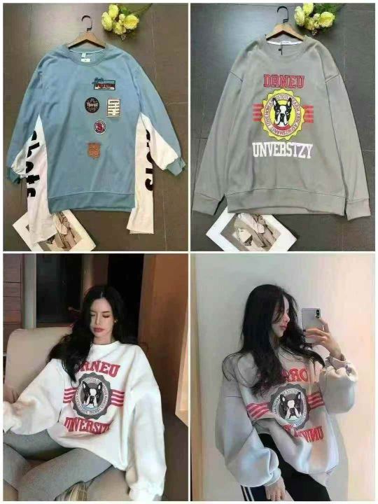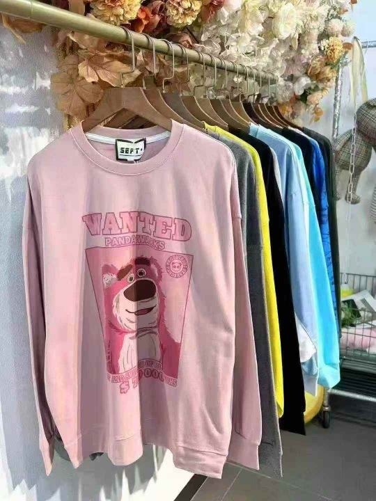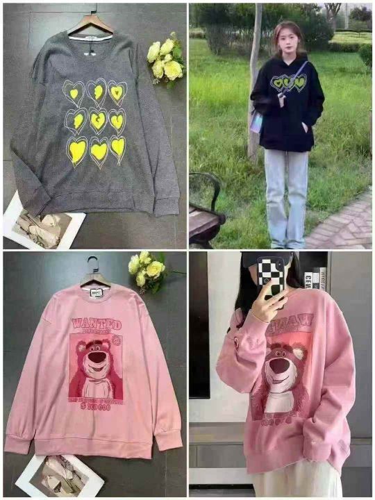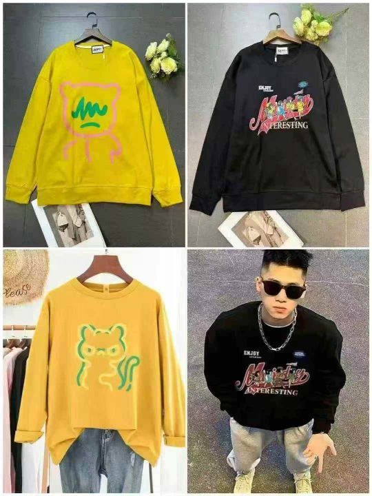 上身圆领卫衣[太阳]全清13.、300件、均码男女纯棉宽松休闲时尚字母图案印花长袖卫衣,大部分后领包边到肩,部分有吊牌,品质,这个性价比直接拉满✅全部全新独立包装、100/200件起多款混配13.3。 货号:1303