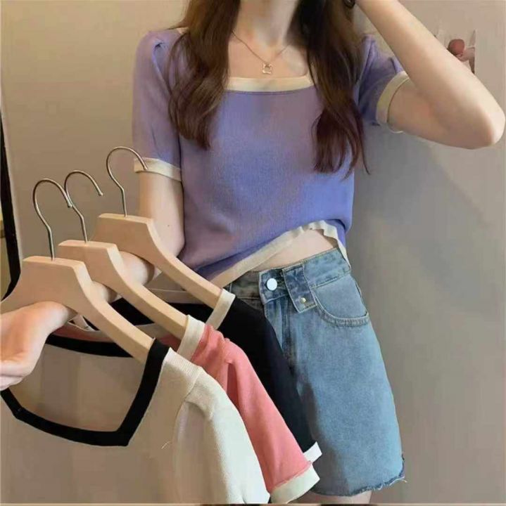 夏季新款大码宽松弹力显瘦方领冰丝针织短袖,独立包装,均码面料柔软舒适弹力,宽松版,米色和黑色为主,单款4色,4600件,全清5.9元超低价秒杀!分货加一!