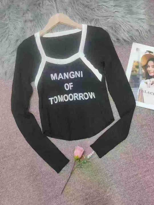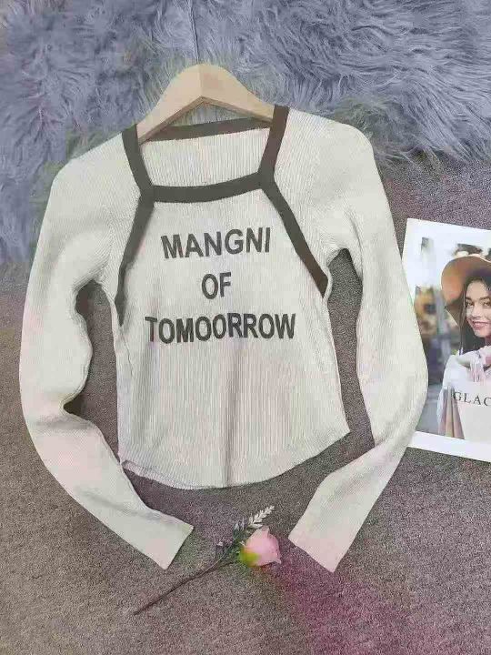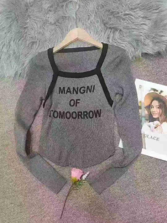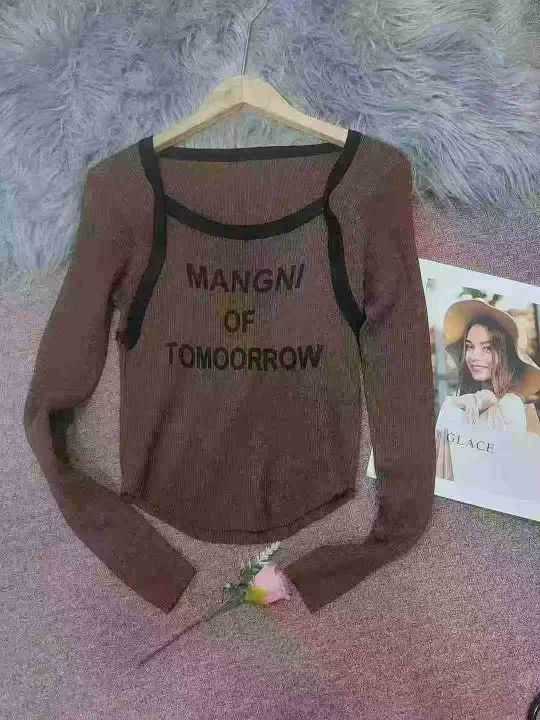 美式时髦拼色假两件方领长袖秋冬新款字母修身显瘦针织毛衣打底衫,品质很好,独立包装,均码,400件,清6.5,分➕5毛