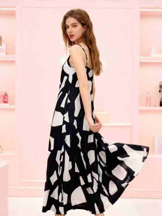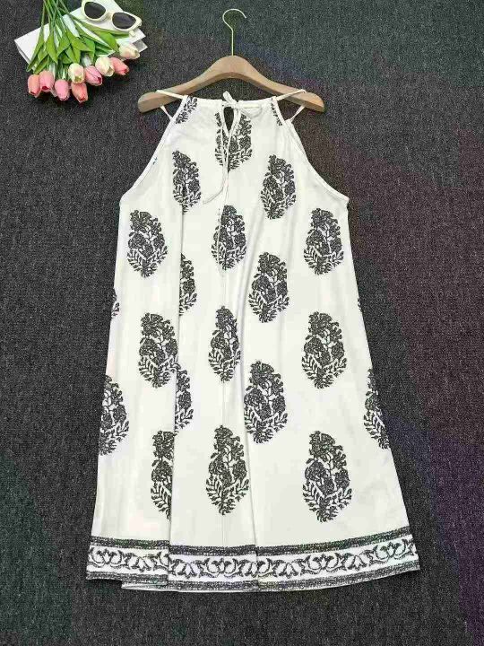设计感宽松复古印花无袖吊带连衣裙夏季新款海边度假风...