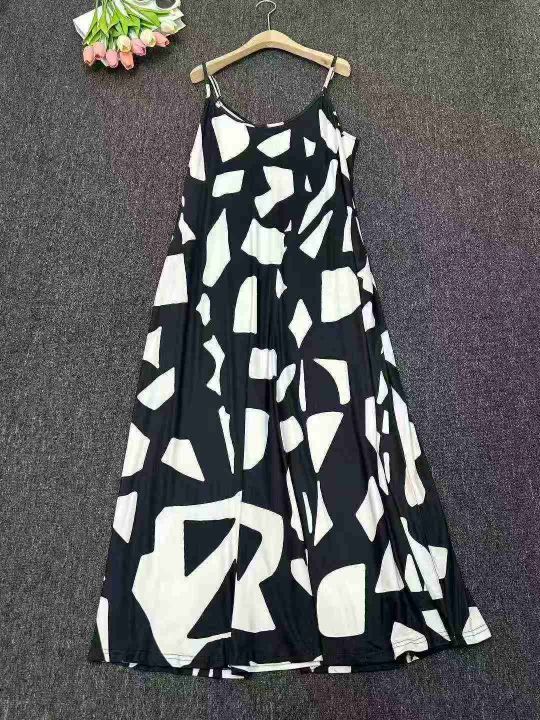 设计感宽松复古印花无袖吊带连衣裙夏季新款海边度假风气质,独立包装,Xl-5XL,142件,全清7.8