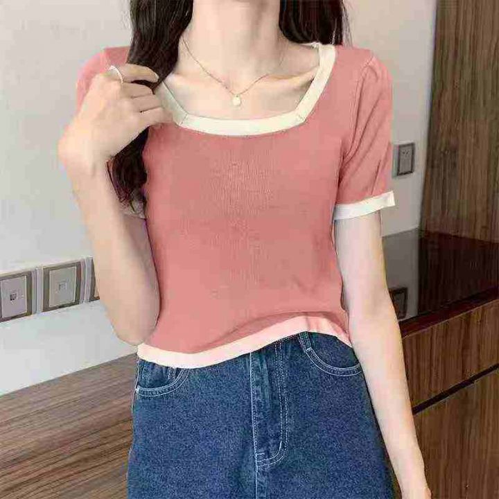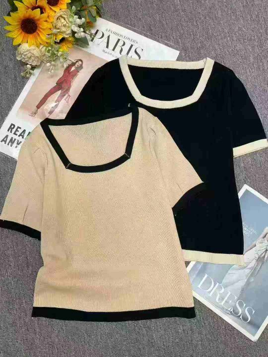 夏季新款大码宽松弹力显瘦方领冰丝针织短袖,独立包装,均码面料柔软舒适弹力,宽松版,米色和黑色为主,单款4色,4600件,全清5.9元超低价秒杀!分货加一!