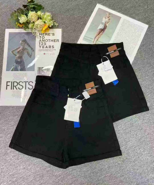 夏季爆款高品质女装洗水棉双排扣设计感高腰阔腿牛仔短裤,独立包装带吊牌带...