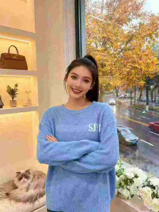 秋冬新款毛衣宽松慵懒女针织打底衫长袖百搭洋气时尚圆领针织上衣,独立包装,1100件左右,清7.8,分➕1