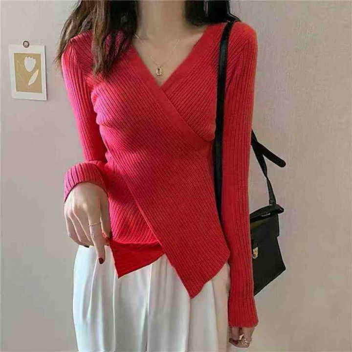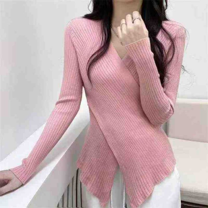 秋冬新款网红设计感宽松百搭小众交叉V领坑条包芯纱套头毛衣,独立包装,均码面料软糯舒适弹力大,290件,全清6.9元超低价秒杀!
