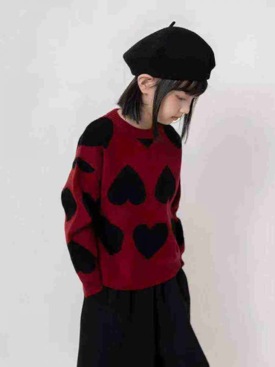 全清5.883件慵懒女童爱心毛衣,冬季潮流时尚红色针织...