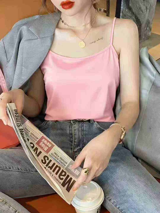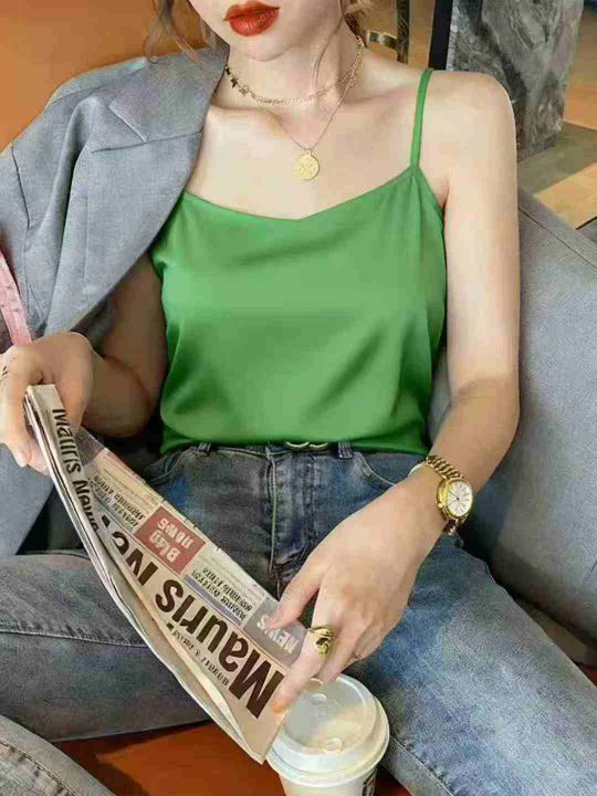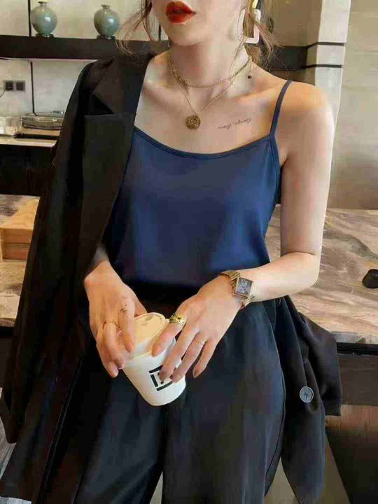 夏季新款法式防真丝缎面冰丝西装打底宽松吊带,独立包...