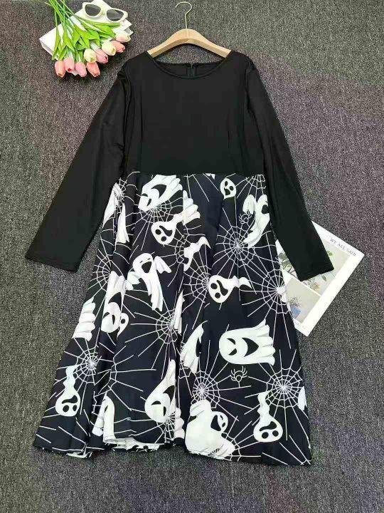 跨境电商赫本复古万圣节印花长袖大摆连衣裙送丝带,独立拉链包装,410件,XL-4XL,全清8.8。 货号:1323