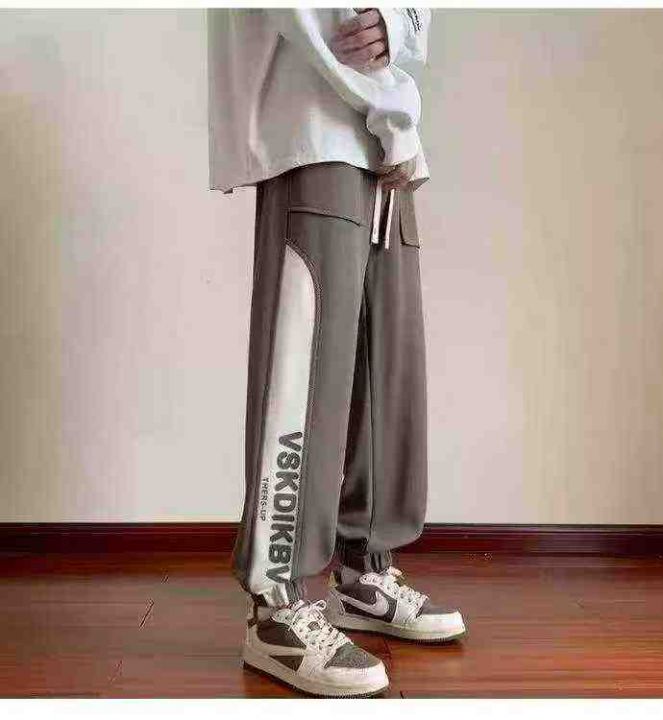 男士秋季新款港风束脚卫裤潮牌拼色字母休闲华棉长裤,独立包装,数量1493条,尺码M-4XL,大码数偏多