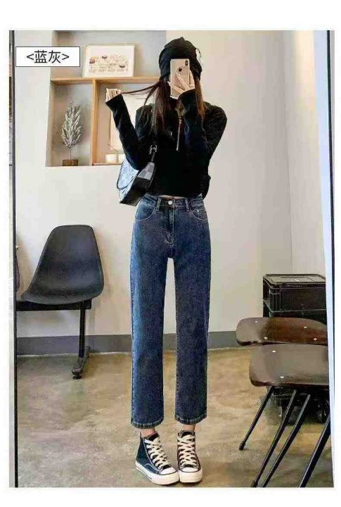 秋季新品洗水棉网红复古直筒牛仔烟管裤,独立包装带腰...